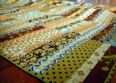 Is it too late to give my brother a wedding present if he's been married for almost a year and a half? If you're new around these parts or if you've forgotten, I'm not shy about my feelings toward the actual quilting of a quilt (aka the bane of my existence). I've said it before and I'll say it again. I love everything involved in making a quilt except the quilting part. So here's to the happy couple...who got married January 5... of 2008.